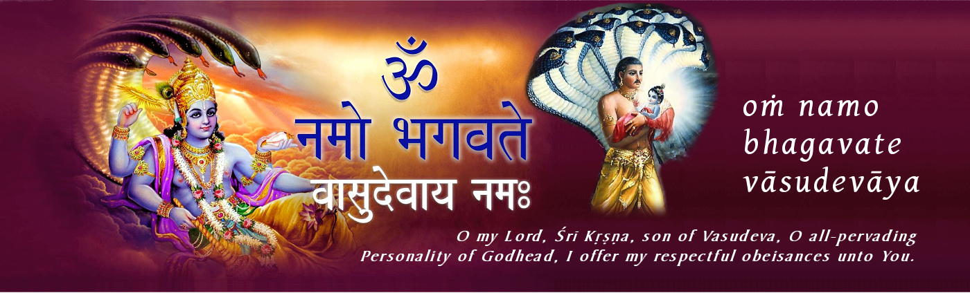 Vāsudevāya means “to Kṛṣṇa, the son of Vasudeva.” Since by chanting the name of Kṛṣṇa, Vāsudeva, one can achieve all the good results of charity, austerity and penances, it is to be understood that by the chanting of this mantra, oṁ namo bhagavate vāsudevāya, the author or the speaker or any one of the readers of Śrīmad-Bhāgavatam is offering respectful obeisances unto the Supreme Lord, Kṛṣṇa, the reservoir of all pleasure. This mantra is a viṣṇu-mantra, for by practicing the chanting of this mantra one is elevated to the Viṣṇuloka.