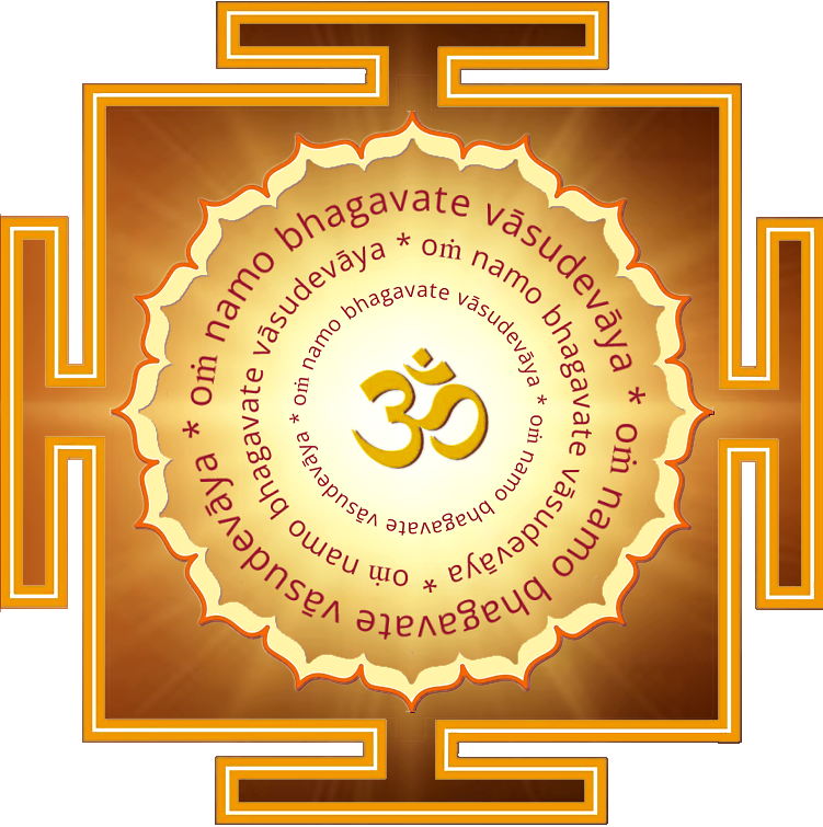 Vāsudevāya means “to Kṛṣṇa, the son of Vasudeva.” Since by chanting the name of Kṛṣṇa, Vāsudeva, one can achieve all the good results of charity, austerity and penances, it is to be understood that by the chanting of this mantra, oṁ namo bhagavate vāsudevāya, the author or the speaker or any one of the readers of Śrīmad-Bhāgavatam is offering respectful obeisances unto the Supreme Lord, Kṛṣṇa, the reservoir of all pleasure. This mantra is a viṣṇu-mantra, for by practicing the chanting of this mantra one is elevated to the Viṣṇuloka.